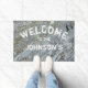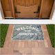 Voeg je familienaam toe aan deze stijlvolle deur. Oorspronkelijke foto van natuurlijke rivierrotskliffen. in grijs, is deze mat volledig aanpasbaar! Verander de plaatsing, de kleur, of de doopvont door zich uit te geven!