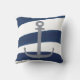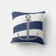 Nautical Anchor on Blue and White Wavy Stripes Kussen