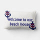 Beach house decorations. decoratieve kussens met marineblauw en rode ankers en boei met een neutraal thema. Vun voor liefhebbers van koken en zeilen of meer- en strandhuizen. De gepersonaliseerde sjabloon die zegt welkom in ons strandhuis" is gemakkelijk gewijzigd of volledig verwijderd voor de aankoop. Amerikaans maakte Mojo-kussens.