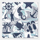 Een leuk strandpatroon van nautische elementen, waaronder anker, zeemeeuw, zeesterren en nog veel meer, allemaal in marineblauw met wervelingen en golfblauwe accenten. Creëer Beach House of badkamer inrichting met dit opvallende originele patroon. Zoek ID839 om andere producten met dit ontwerp te bekijken.