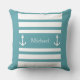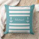 Nautical Blue and White Stripes Anchor Name Sierkussen. U kunt zich personaliseren door tekst (naam, familienaam, monogram..) te schrijven.