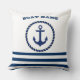 Nautical Boat Name,Anchor Navy Blue Striped Kussen