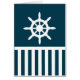 Design nautique avec voilier et décoration à rayures bleues et blanches sur arrière - plan bleu