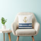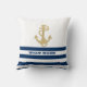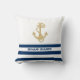 Nautical, Gold Anchor Navy Blue White Stripes Kussen