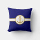 Elegant nautisch gouden anker op blauw en wit Sierkussen van de marine.