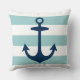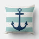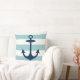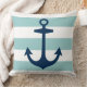 Nautical Navy Blue Anchor met Aqua Stripes Kussen