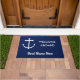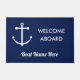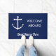 Nautical Navy Blue Anchor Welcome Aboard Name Deurmat