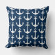 Het ontwerp van de vierkant accent van de kussen kenmerkt een kustpatroon van witte bootankers. De blauwe achtergrondkleur van de marine kan worden aangepast.
