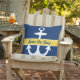 Stijlvol en kickervierkant ontwerp voor een buikvormige accuskussens is voorzien van een vleiend wit en blauw bootankerontwerp met aangepaste tekst voor een bootnaam of andere aangepaste tekst. De donkerblauwe achtergrondkleur kan worden aangepast.