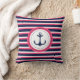 Nautical Navy Blue Hot Pink Stripes Anker Ontwerp Kussen