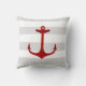 Nautical Red Anchor Grey White Stripes Kussen