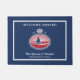 Welkom familie en vrienden aan boord van uw boot of in uw strandhuis of huis aan zee met dit aanpasbare nautische thema "Welcome Aboard" deurmat met een illustratie van een zeilboot in de kleuren rood en wit geaccentueerd met een touwgrens in marinestijl en een marine-achtergrond. Wijzig de naam van de boot, de locatie van het dok en het jaar om een unieke toevoeging aan uw boot of huis te creëer. Maakt een geweldig housewarming cadeau voor nieuwe boot- of strandhuiseigenaren.