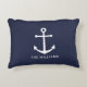 Nautical White Anchor and Custom Name on Navy Blue Accent Kussen