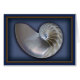 La coquille intérieure de demi de coquille de nautilus sur un tapis bleu a placé à l'intérieur d'un effet de boîte d'ombre.