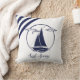 Nautisch blauw zeilboot silhouet/zeil weg/marine kussen