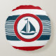 Nautisch ontwerp met versiering van zeilboten in ronde vorm op blauwe, rode en witte gestreepte achtergrond