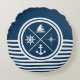 Het ontwerp met een zeemijlvormige maaswijdte (anker, zeilboot, zeilwiel, kompas) is voorzien van een decoratie op witte en blauw gestreepte ondergrond.