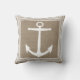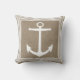 Klassieke nautische stijl gooikussen met een rustieke faux burlap achtergrond, wit gestreept lijst en een wit scheepsankersilhouet.