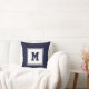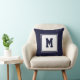 Navy Blauw en Wit Preppy Vierkant Monogram Custom Kussen