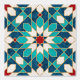 Navy blauw, blauwgroen, wit en rood marmer Marokkaans mozaïekpatroon met een goudgrens.