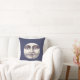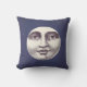 Navy blue starry hemelhemd decoratief werpt kussen met man in het maangezicht aan één kant en een solide blauwe sterrenhemel aan de achterkant.