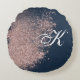Navy Blue en Faux Roos Gold Glitter Monogram Rond Kussen