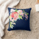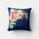 Een gewaagd, helder en doortastend waterverf bloemig afbeelding is de eigenschap op zowel de voorzijde als de rug van deze kussen. Het afbeelding is in kleuren van koraalroze, bleek roze, bleek geel en groen, met touches van tangerine, blauw en violet. De bloemboeket staat links bovenaan tegen een donkerblauw marineschopje. De achterkant van de kussen is identiek aan de voorkant. *Dit ontwerp gebruikt kunstwerk van www.CreateTheCut.com.