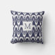 Navy Blue Floral Ikat Bohemian Monogram Buitenkussen