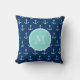 Navy Blue White Anchors Pattern, Mint Green Monogr Kussen