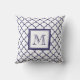 Navy Blue, witte quatrefoil | Uw monogram Kussen