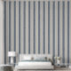 A large scale navy blue ticking stripe pattern with a linen texture.