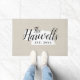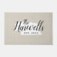 Moderne boerenboerengepersonaliseerde doormat met je familienaam in je staatskaart. Faux burlap canvastextuurachtergrond. Klik op Aanpassen om uw eigen tekst en afbeeldingen toe te voegen en een uniek ontwerp te creëer!