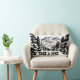Monochrome illustratie met uitzicht naar bergen en besneeuwde winterhouttekening in houtsnijstijl