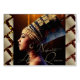 Cette carte présente un magnifique tableau de la reine Nefertiti, l'emblématique reine égyptienne réputée pour sa beauté et son pouvoir. L'oeuvre capte son élégance royale, ornée de sa couronne bleue signature et de bijoux complexes. L'arrière - plan présente des éléments de la culture égyptienne antique, ajoutant profondeur et contexte historique au portrait.