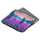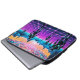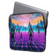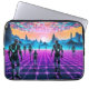Dit levendige en surrealistische landschap wordt sterk beïnvloed door cyberpunk-esthetiek. Het beschikt over een groep figuren in futuristische pakken met gloeiende elementen, die naar de horizon lopen op een rasterachtige grond die een digitale of virtuele omgeving suggereert. Boven hen komt een uitgestrekte lucht vol kleurrijke neonlichten samen naar de zonsondergang in het midden van het afbeelding. De combinatie van de stralende lucht en het reflecterende raster creëer geeft een gevoel van diepte en oneindigheid. Dit kunstwerk combineert technologie en kunstenaarschap en roept thema's van verkenning en het onbekende op in een digitale grens.