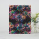 Een levendig en helder neon vuurwerk barstpatroon op een rijke zwarte achtergrond.