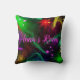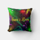 Fun neon, kleurrijk abstract kussen met sterren, spiraaltjes en gewassen in rood, groen, roze, geel en turquoise. Personaliseer met jouw naam, voeg een datum, of Tevreden Dag toe. GEEN WERKELIJK GLOW