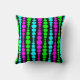 Dit werpt kussen heeft een modern ontwerp uit de midden eeuw van neonroze, groene en blauwe afgeronde rechthoeken in stijgende en dalende grootte die verticaal op een gebied van zwart lopen.