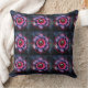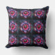 Opvallende gotische neon roze bloemen op donker paarse achtergrond. De achterkant van het kussen is hetzelfde neonroze dat in de bloem wordt gebruikt.