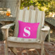 Neon Roze Initiaal Monogrammed Outdoor Kussen. Decoratief buitenkussen met een enkel initiaal. Personaliseer snel en gemakkelijk.