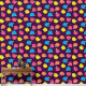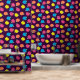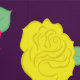 Stijlvolle rozen in helder neonroze, blauw, geel en koraal met neongroene bladeren worden over een diepe paarse achtergrond gespoeld om een leuk floreel patroon te creëer.