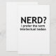 Nerd? Ik geef de voorkeur aan de term intellectuele badass. Grappig, geeky design.