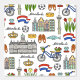 Een patroon met handgetekende gekleurde symbolen van Nederland. | © en ® Bigstock® - Alle rechten voorbehouden.