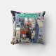 Kussen uit New York City met een kleurrijke fotografie van de artistieke architectuur van de stad, het typische groene en witte stadsteken en de aanpasbare tekst "New York City".