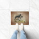 Newfoundlandhonden in burlap look background . De antiek afbeelding is bewerkt en toegepast op dit object door Alma Wad. Rustige deurmat voor een hondenliefhebber thuis. U kunt de tekst "Welkom" nu aanpassen.