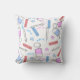 Eenvoudig ontworpen NICU-verpleegkussen met een medisch thema van IV-tassen, bandaids, spuiten en hart in roze en blauw. Achterkant van de kussen is lichtblauw en witte poka stippen.