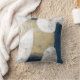 Een grote abstracte vorm in marineblauw bedekt de canvasrand tot de rand met uitsparingen die een getextureerde witte achtergrond onthullen. Een versleten, getextureerd beige gebied zit over de blauwe vorm terwijl witte lijnen draaien als touw in een dynamische afwerking van het stuk.