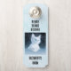 Een deurhanger die zegt: Niet storen (tekst kan worden veranderd / gepersonaliseerd) met een schattige foto van een wit kortharig katje met helderblauwe ogen. Ik staar in de verte. Poten gekruist in de typische kitty cat mode.