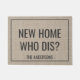 Dit grappige vormgeving kenmerkt de woorden "Nieuw thuis wie is?". Pas deze leuke rustige faux die de deur van het land van de burlap met uw familienaam en douanegroet aan. Het perfecte unieke moderne huishouden of nieuwe huiseigenaars cadeau.