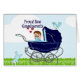 Proud New Grandouders, baby in een blauwe tas, wenskaart.